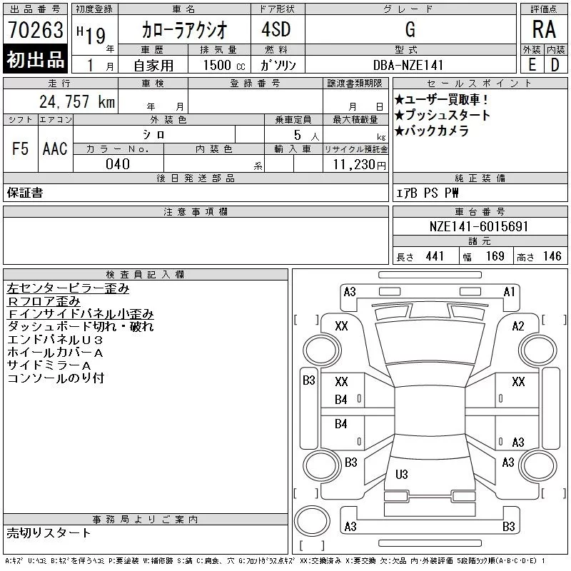 Toyota COROLLA AXIO с аукциона Японии CAA Gifu лот № 70263