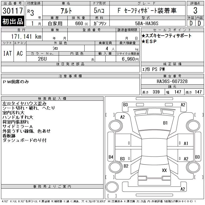 Suzuki ALTO с аукциона Японии CAA Gifu лот № 30117
