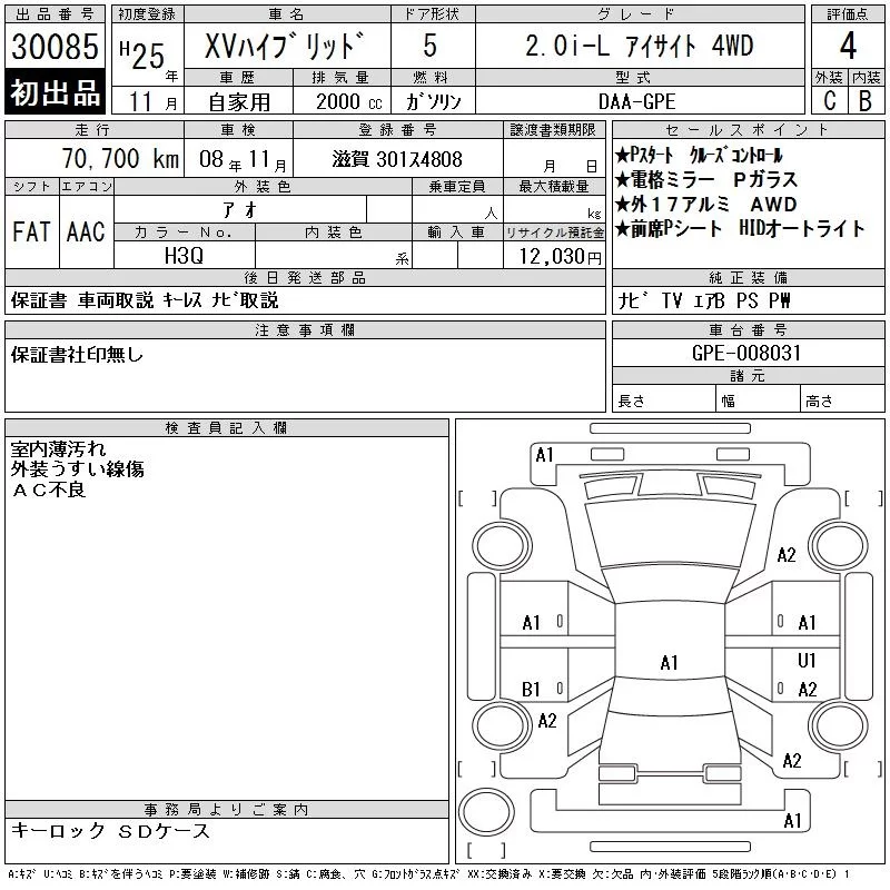 Subaru XV с аукциона Японии CAA Gifu лот № 30085