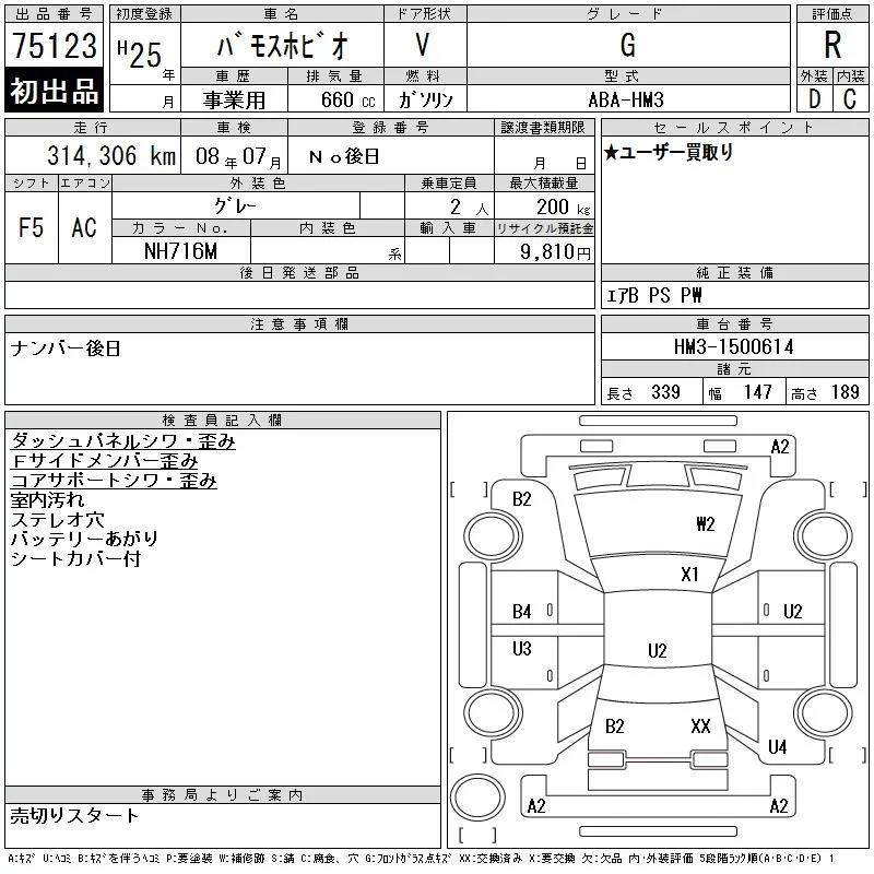 Honda VAMOS с аукциона Японии CAA Gifu лот № 75123