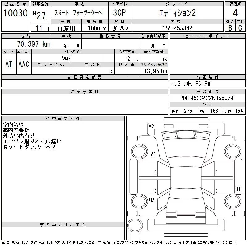 Smart FORTWO с аукциона Японии CAA Gifu лот № 10030