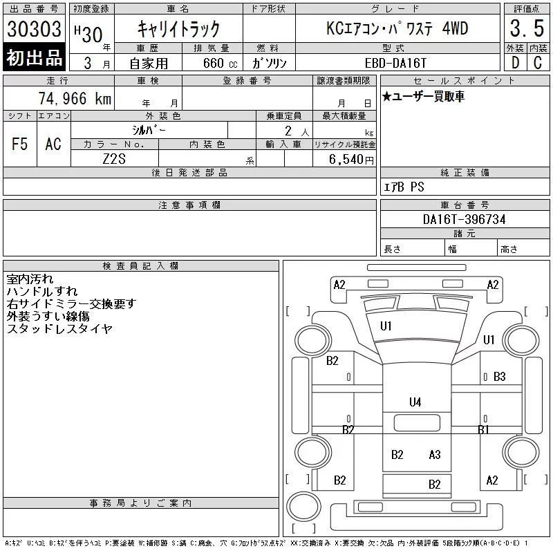 Suzuki CARRY TRUCK с аукциона Японии CAA Gifu лот № 30303