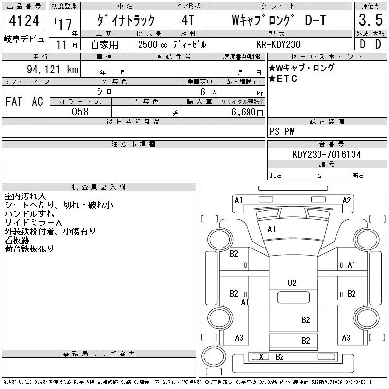 Toyota DYNA с аукциона Японии CAA Gifu лот № 4124
