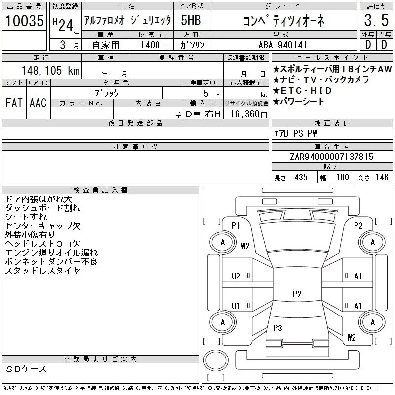 Alfa Romeo Giulietta с аукциона Японии CAA Gifu лот № 10035