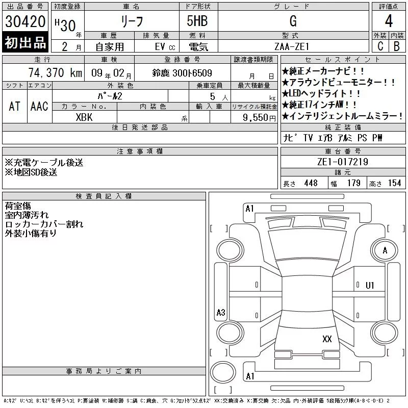Nissan LEAF с аукциона Японии CAA Gifu лот № 30420