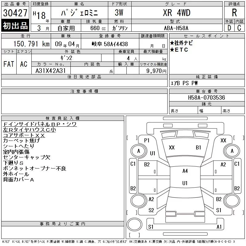 Mitsubishi PAJERO MINI с аукциона Японии CAA Gifu лот № 30427