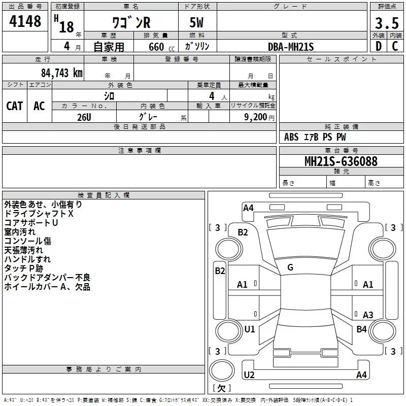 Suzuki WAGON R с аукциона Японии TAA Shikoku лот № 4148