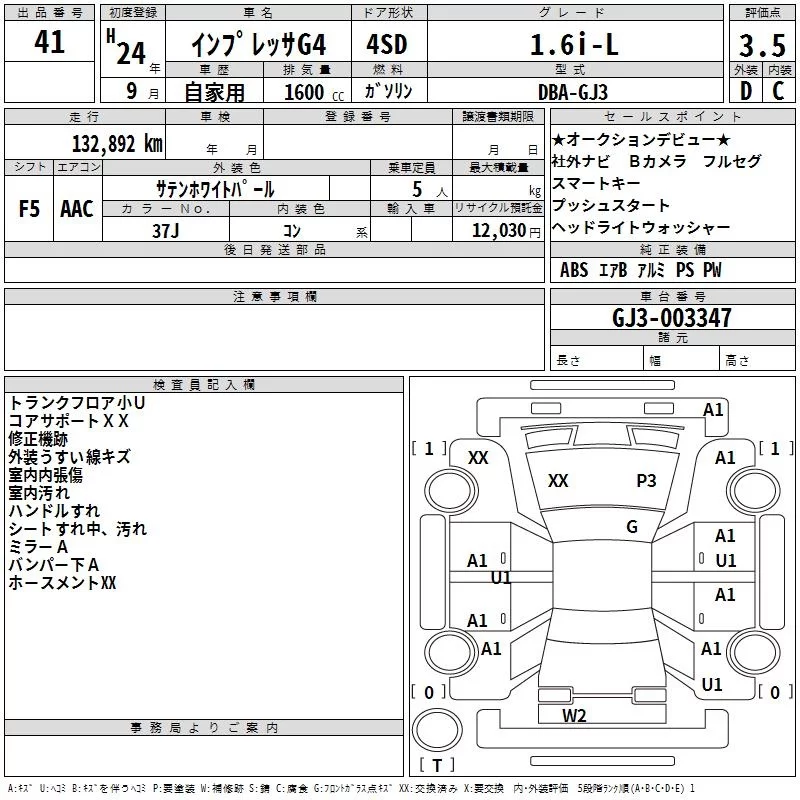 Subaru IMPREZA G4 с аукциона Японии TAA Shikoku лот № 41