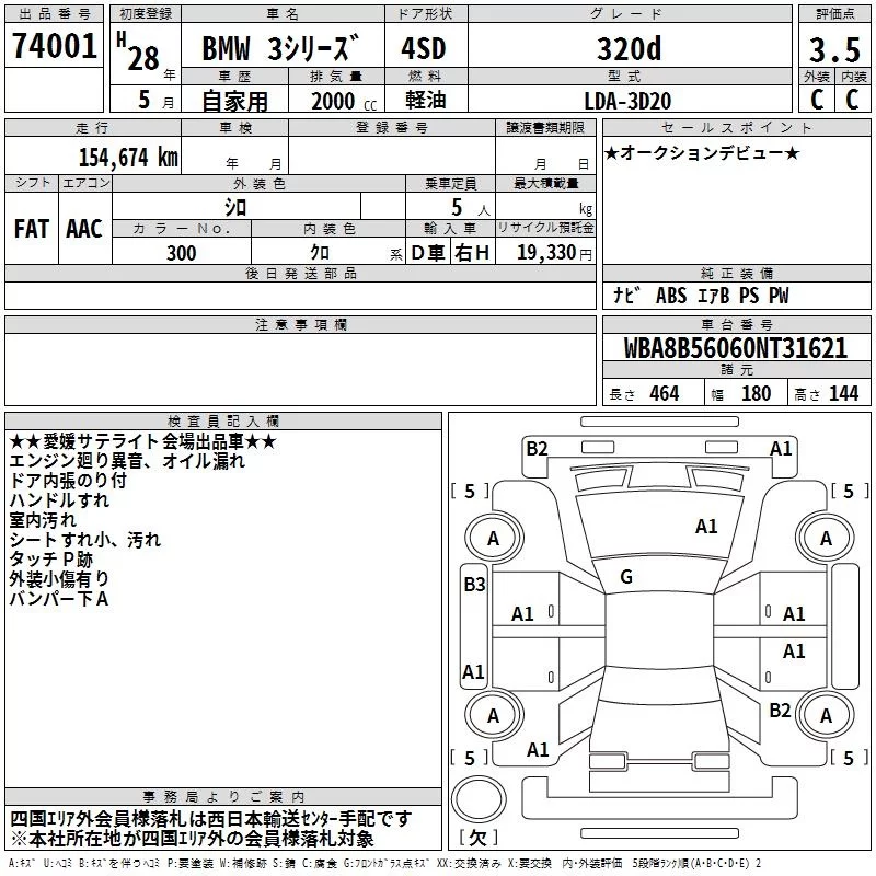 BMW 3-Series с аукциона Японии TAA Shikoku лот № 74001