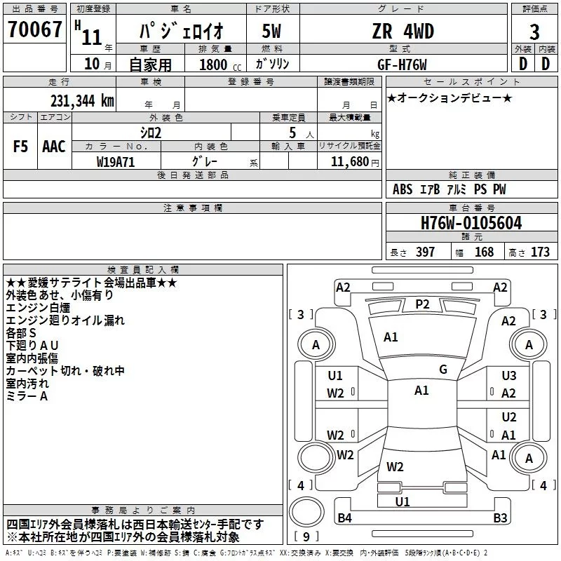 Mitsubishi PAJERO IO с аукциона Японии TAA Shikoku лот № 70067