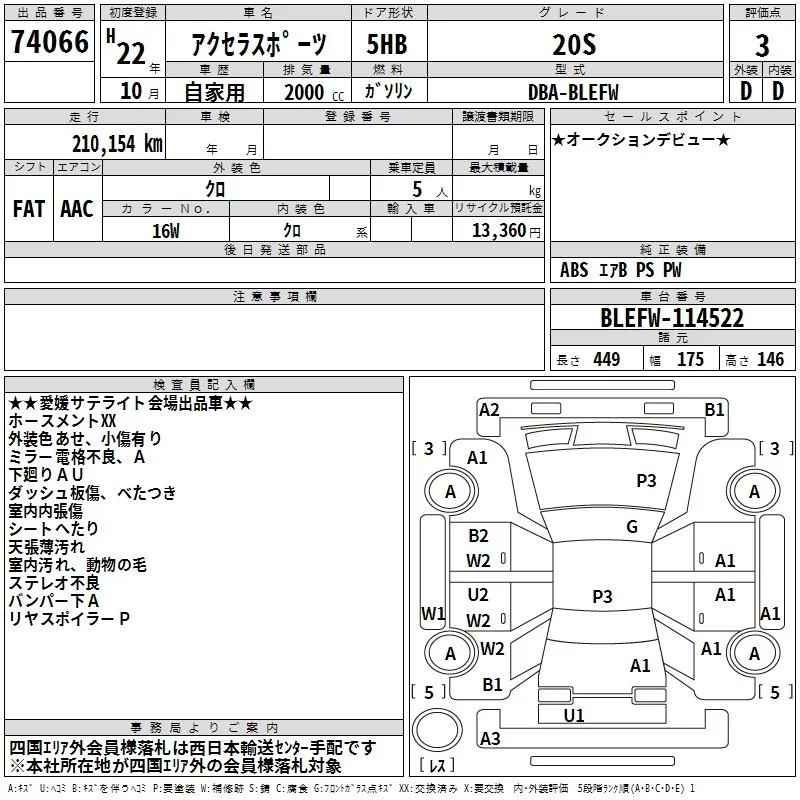Mazda AXELA с аукциона Японии TAA Shikoku лот № 74066