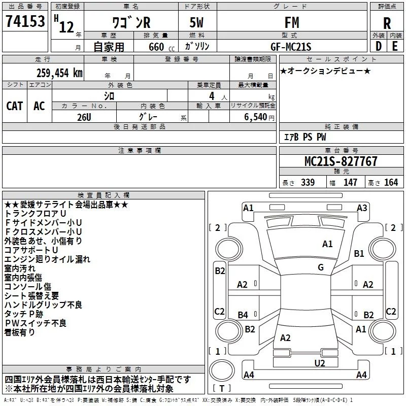 Suzuki WAGON R с аукциона Японии TAA Shikoku лот № 74153