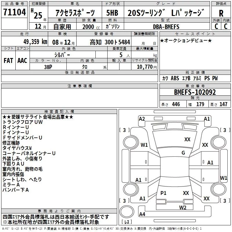 Mazda AXELA с аукциона Японии TAA Shikoku лот № 71104