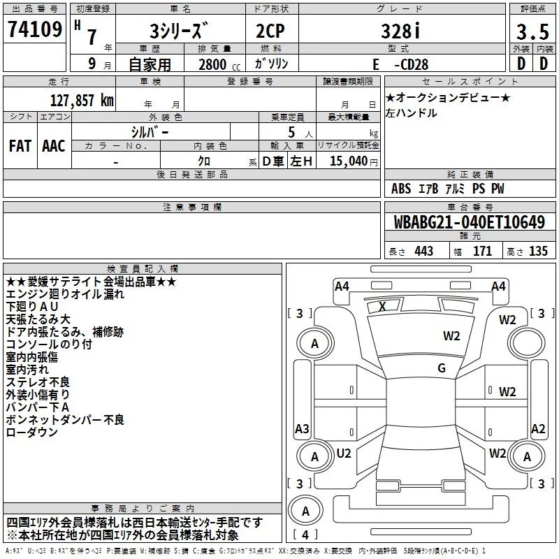BMW 3-Series с аукциона Японии TAA Shikoku лот № 74109