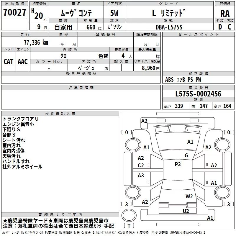Daihatsu MOVE CONTE с аукциона Японии TAA Minami Kyushu лот № 70027