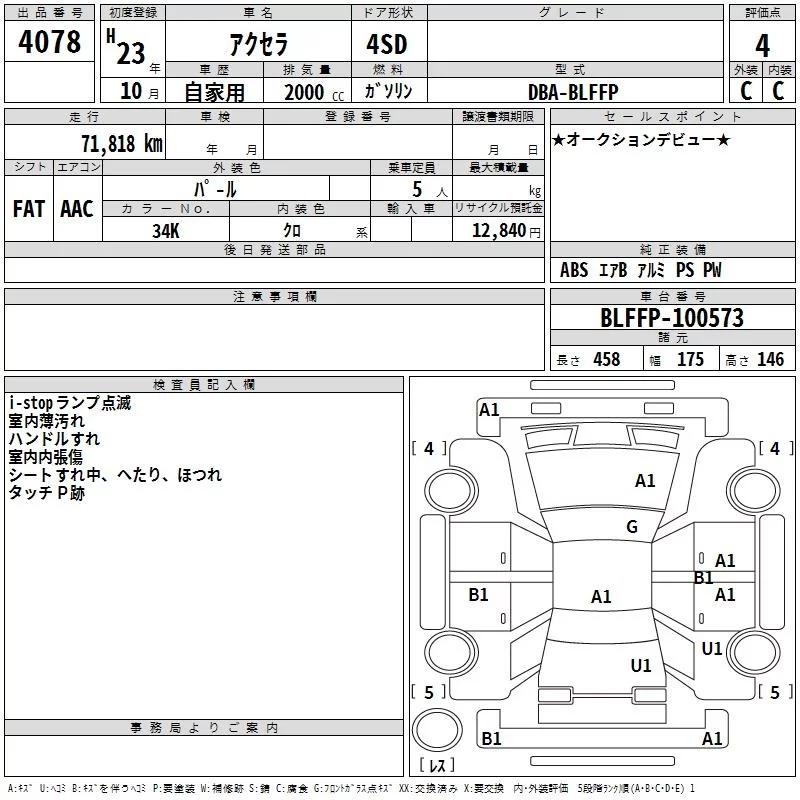 Mazda AXELA с аукциона Японии TAA Minami Kyushu лот № 4078