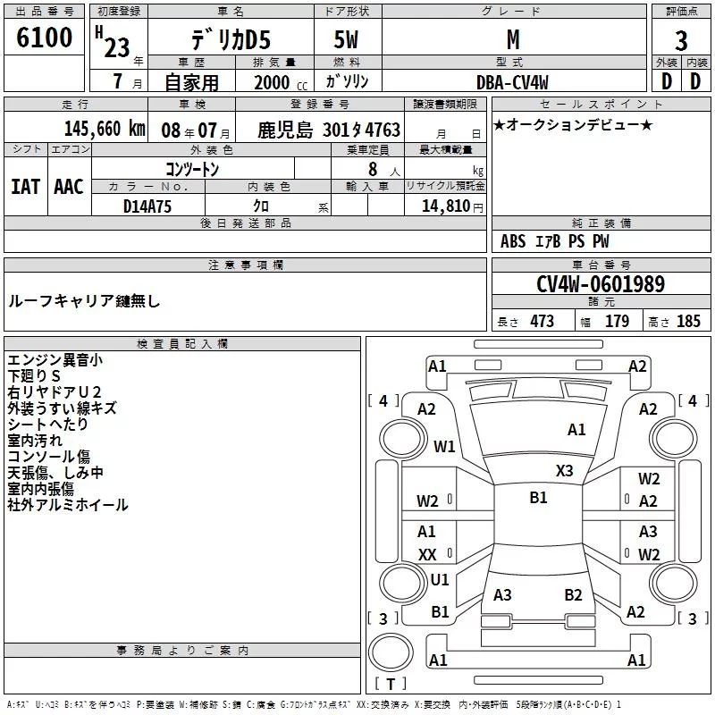Mitsubishi DELICA D5 с аукциона Японии TAA Minami Kyushu лот № 6100