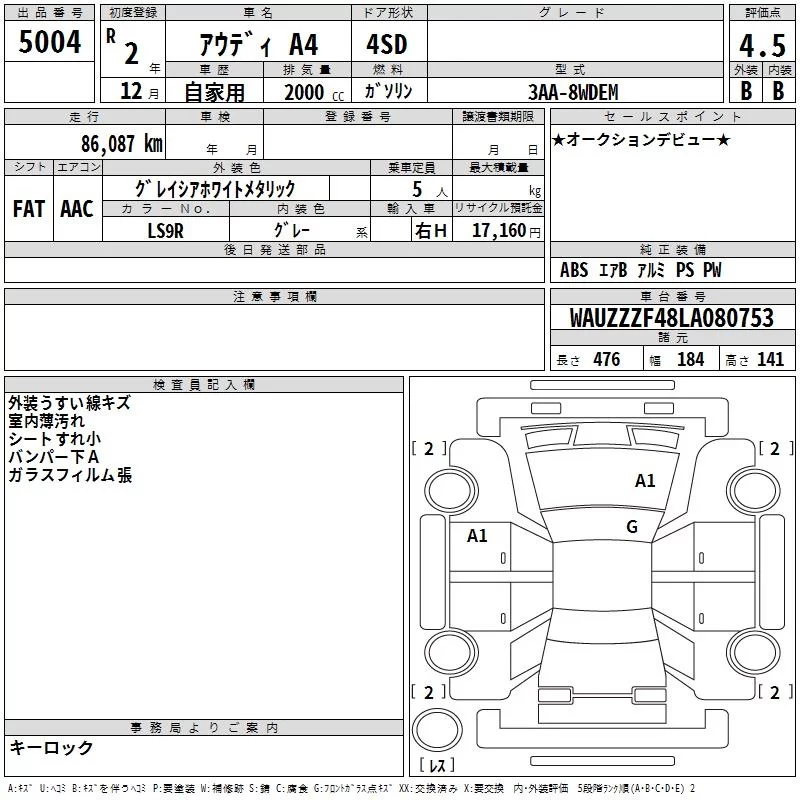 Audi A4 с аукциона Японии TAA Minami Kyushu лот № 5004