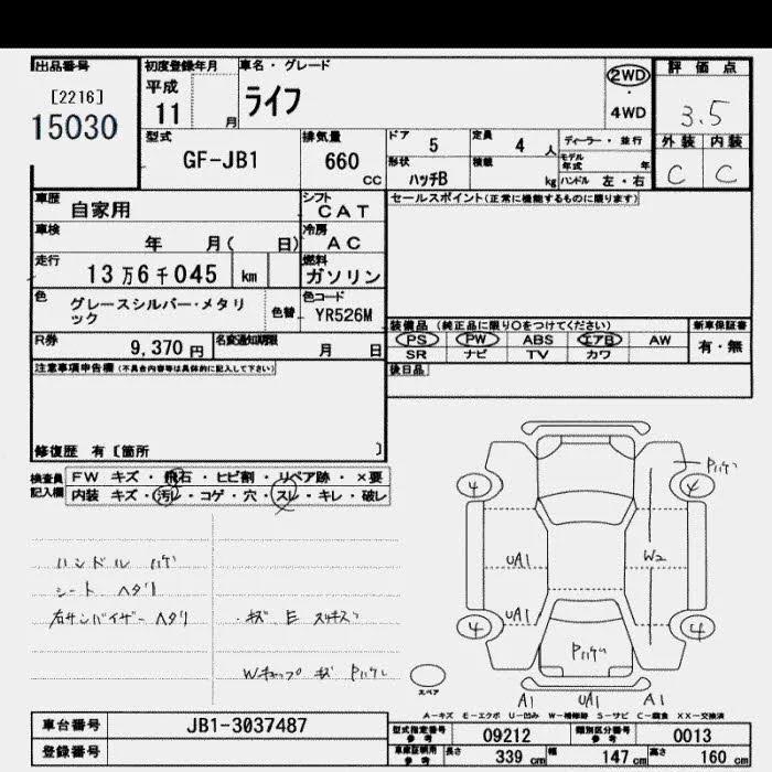 Honda LIFE с аукциона Японии JU Saitama лот № 15030