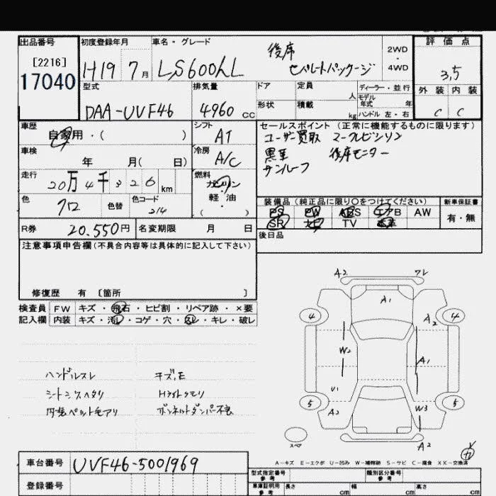 Lexus LS с аукциона Японии JU Saitama лот № 17040