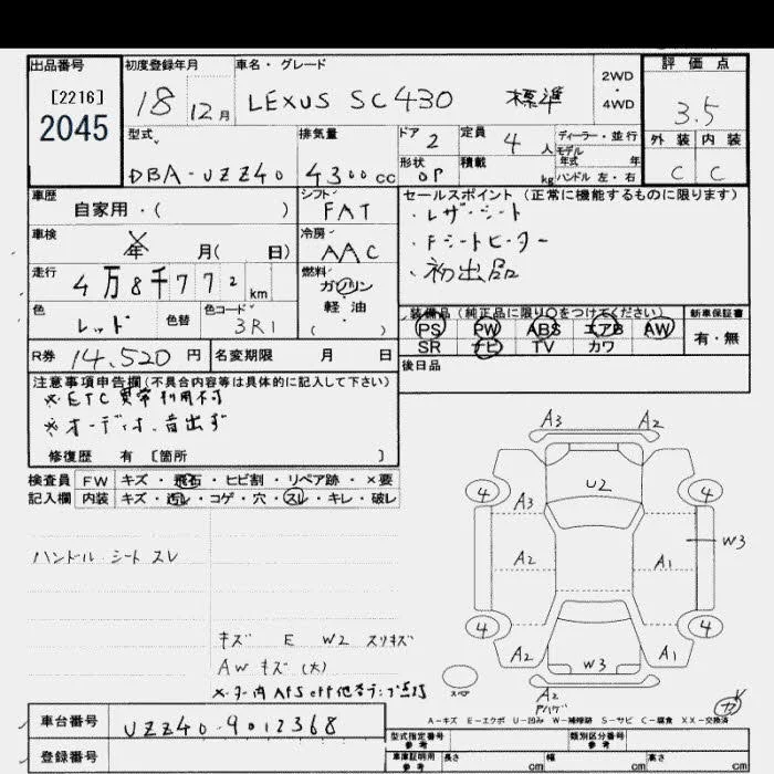 Lexus SC с аукциона Японии JU Saitama лот № 2045