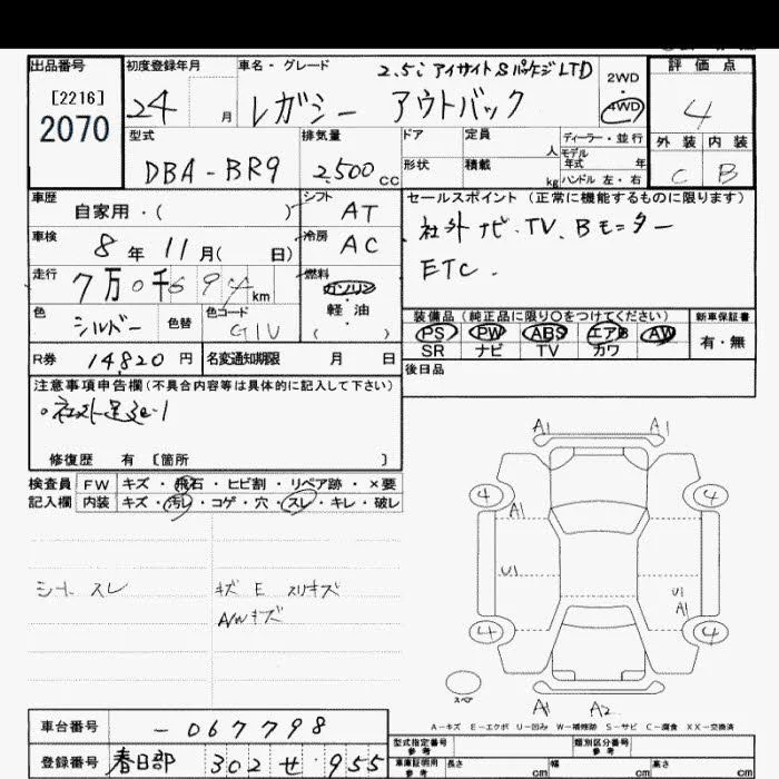 Subaru LEGACY OUTBACK с аукциона Японии JU Saitama лот № 2070