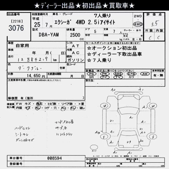 Subaru EXIGA с аукциона Японии JU Saitama лот № 3076