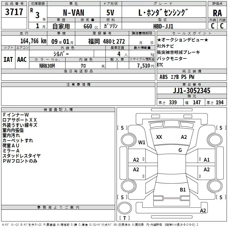 Honda N VAN с аукциона Японии TAA Kyushu лот № 3717