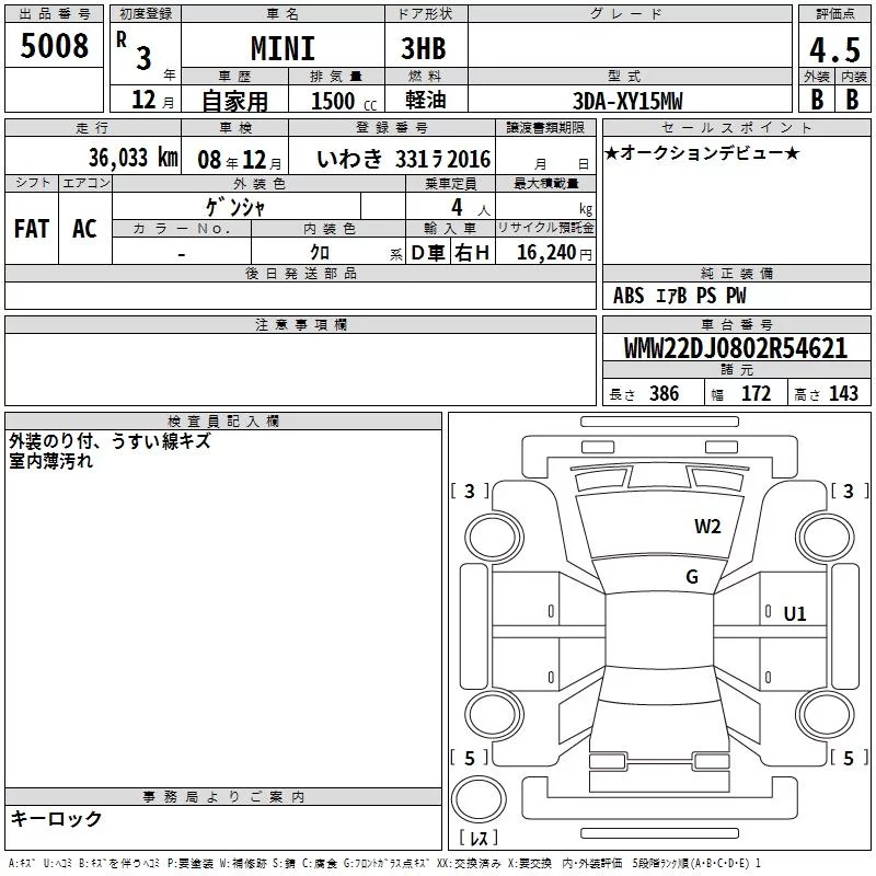 BMW MINI с аукциона Японии TAA Kyushu лот № 5008