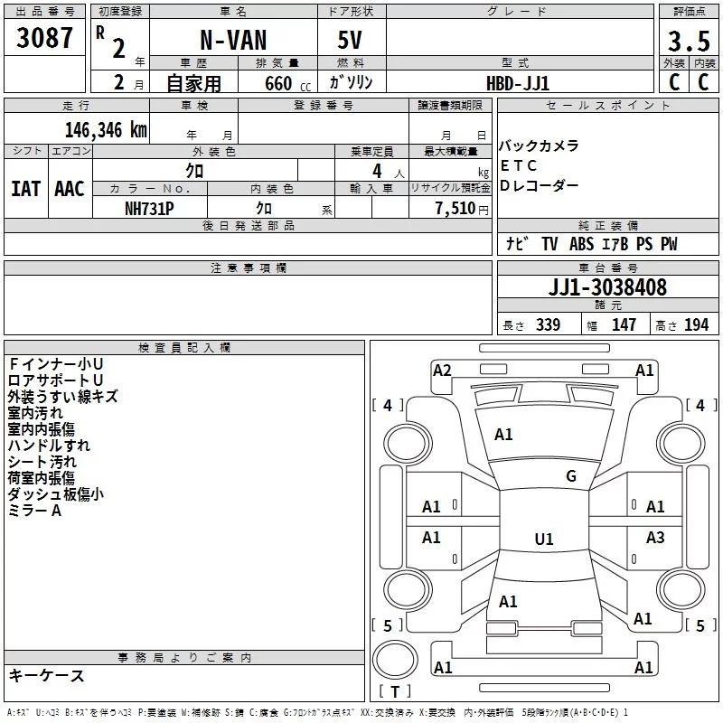 Honda N VAN с аукциона Японии TAA Kyushu лот № 3087
