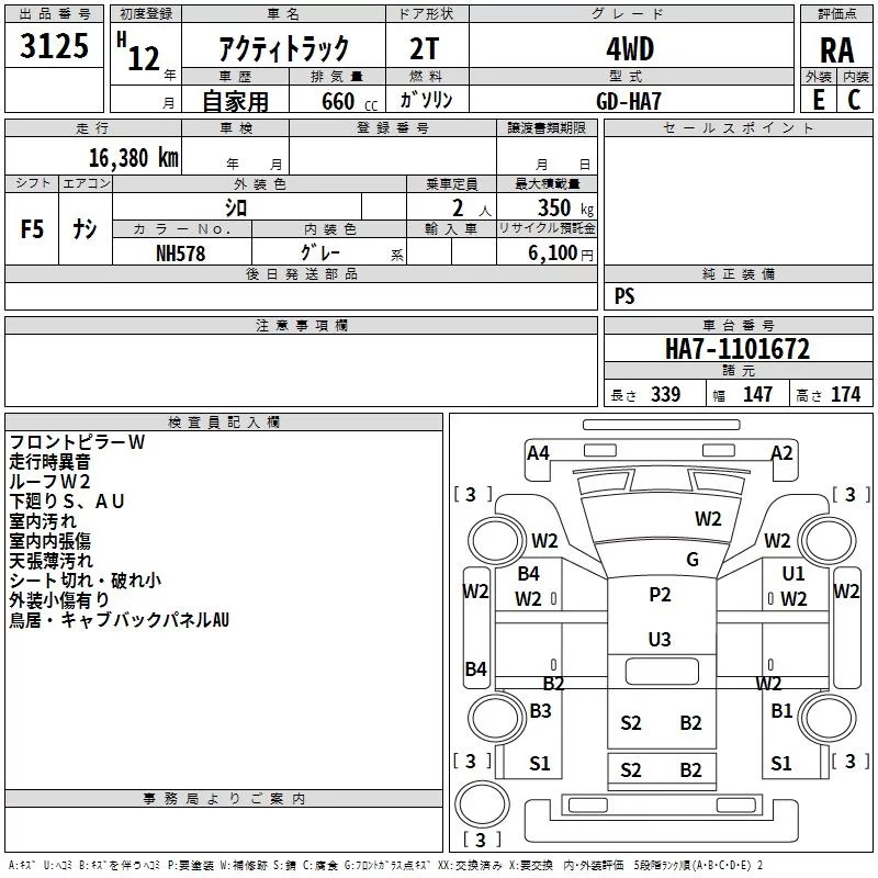 Honda ACTY TRUCK с аукциона Японии TAA Kyushu лот № 3125