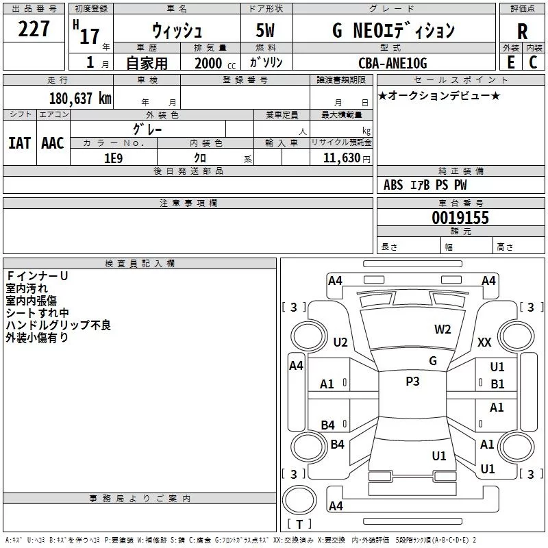 Toyota WISH с аукциона Японии TAA Kyushu лот № 227