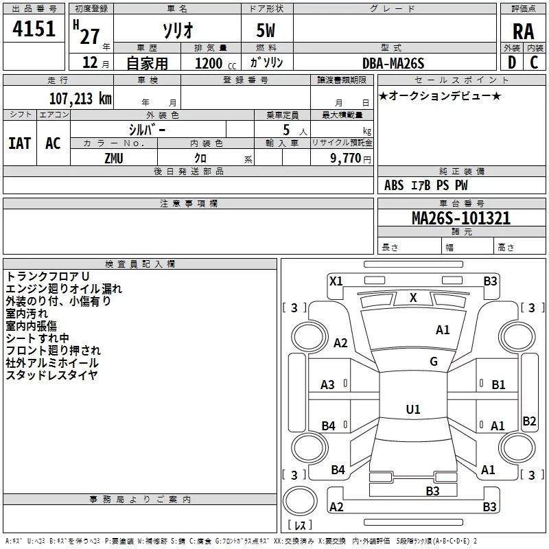 Suzuki SOLIO с аукциона Японии TAA Kyushu лот № 4151