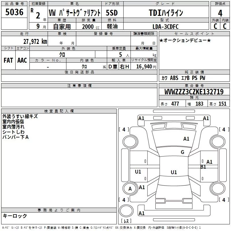 Volkswagen PASSAT VARIANT с аукциона Японии TAA Kyushu лот № 5036