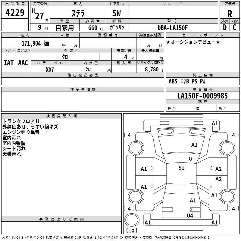 Subaru STELLA с аукциона Японии TAA Kyushu лот № 4229