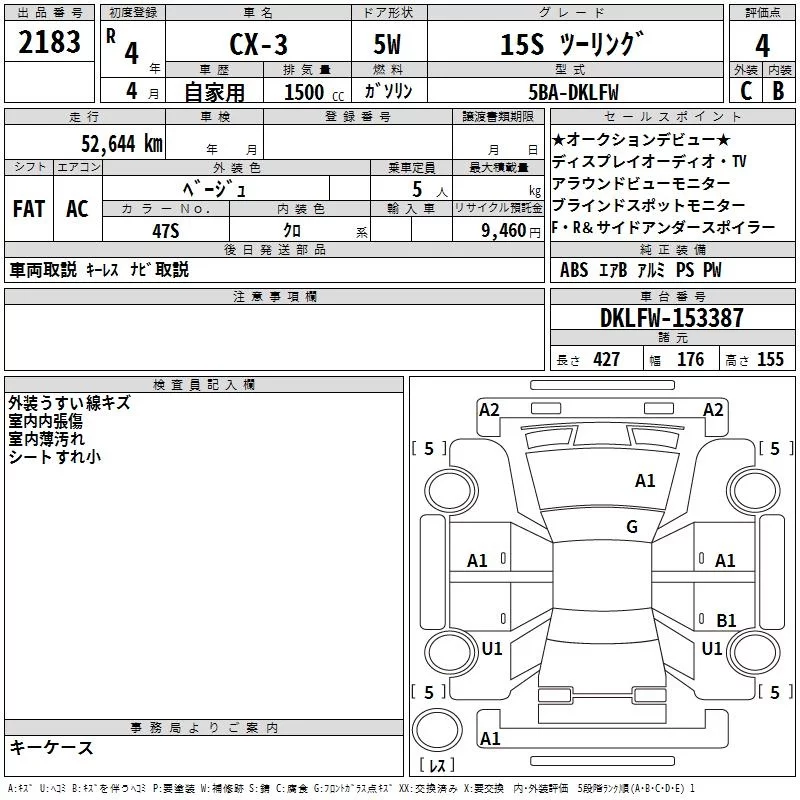 Mazda CX-3 с аукциона Японии TAA Kyushu лот № 2183