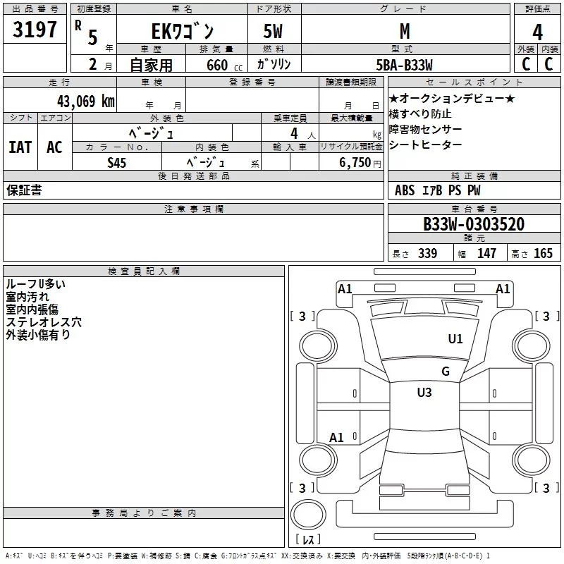 Mitsubishi EK WAGON с аукциона Японии TAA Kyushu лот № 3197