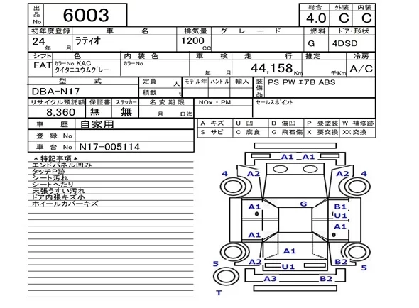 Nissan LATIO с аукциона Японии NAA Fukuoka лот № 6003