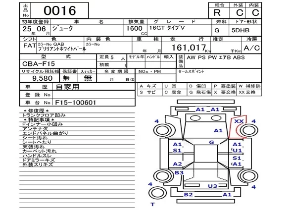 Nissan JUKE с аукциона Японии NAA Fukuoka лот № 16