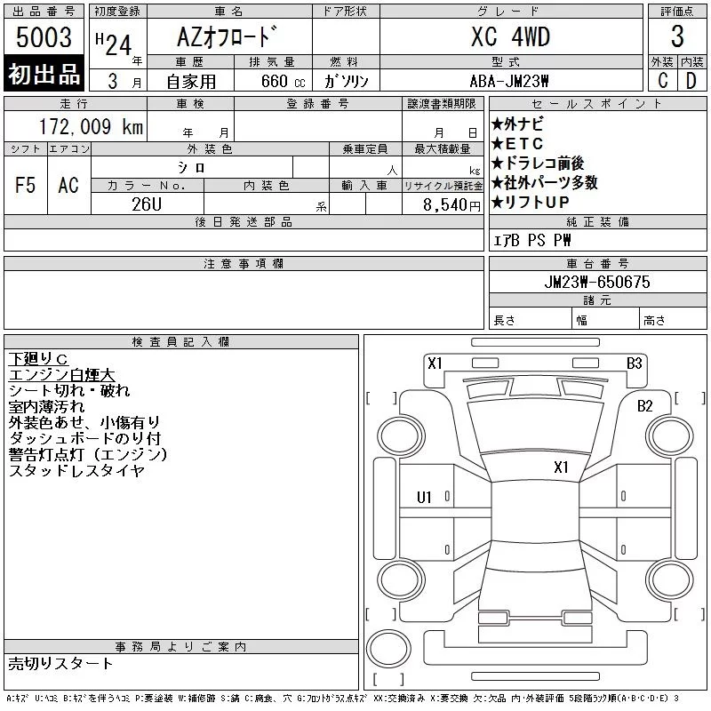 Mazda AZ-OFFROAD с аукциона Японии CAA Tohoku лот № 5003