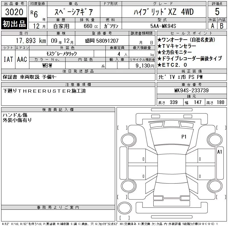 Suzuki SPACIA GEAR с аукциона Японии CAA Tohoku лот № 3020