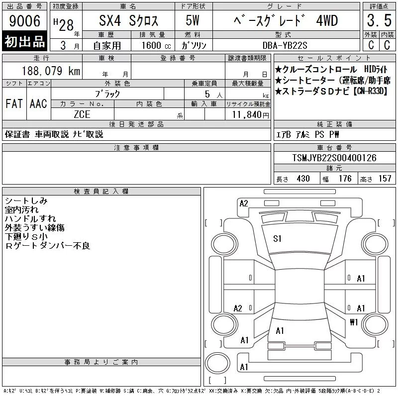 Suzuki SX-4 с аукциона Японии CAA Tohoku лот № 9006