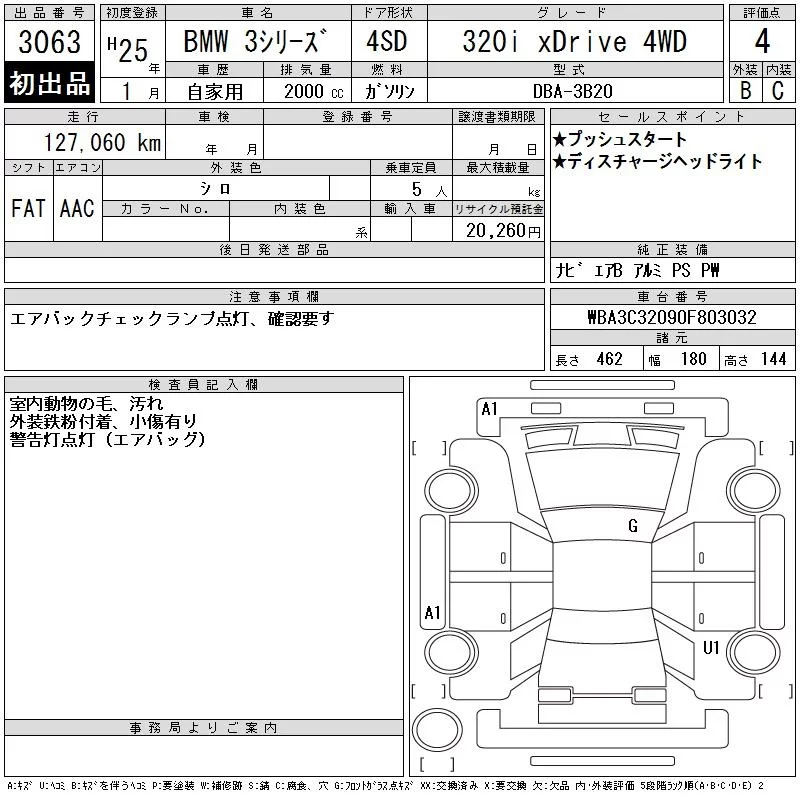 BMW 3-Series с аукциона Японии CAA Tohoku лот № 3063