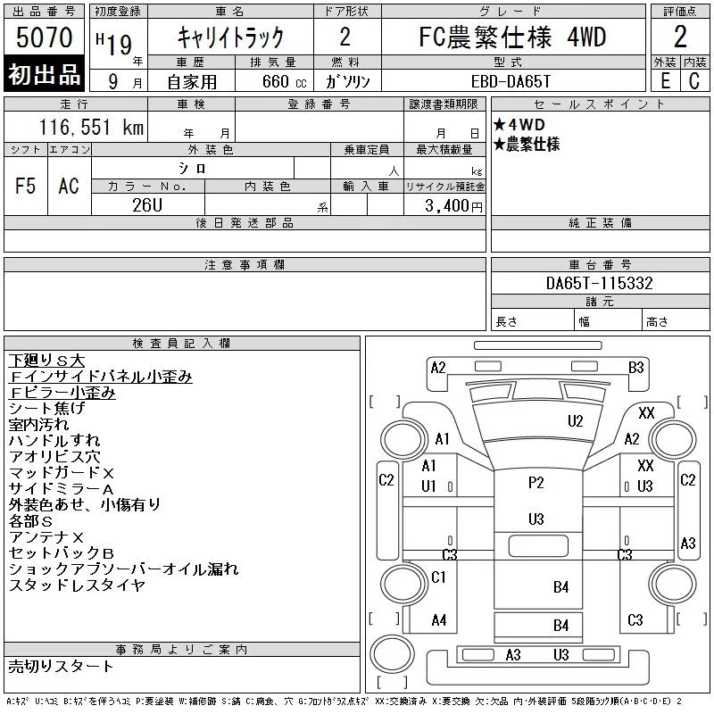 Suzuki CARRY TRUCK с аукциона Японии CAA Tohoku лот № 5070
