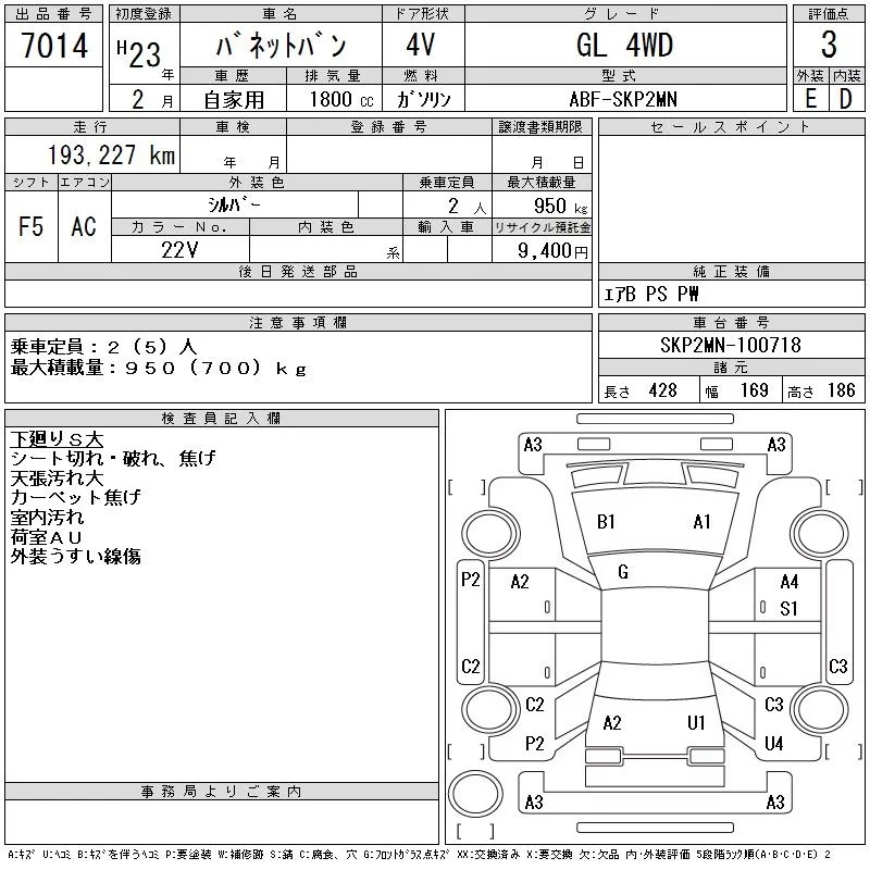 Nissan VANETTE VAN с аукциона Японии CAA Tohoku лот № 7014
