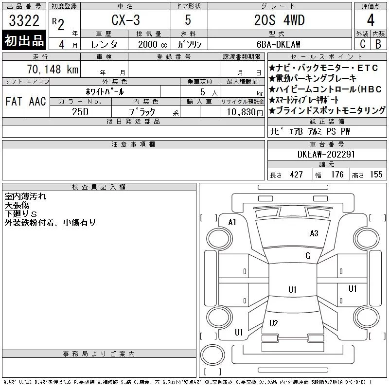 Mazda CX-3 с аукциона Японии CAA Tohoku лот № 3322