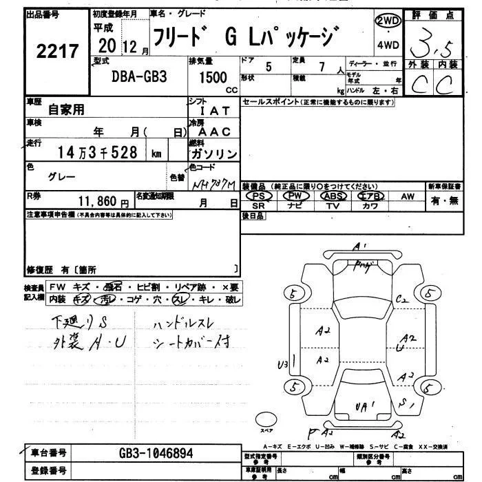 Honda FREED с аукциона Японии JU Yamaguchi лот № 2217