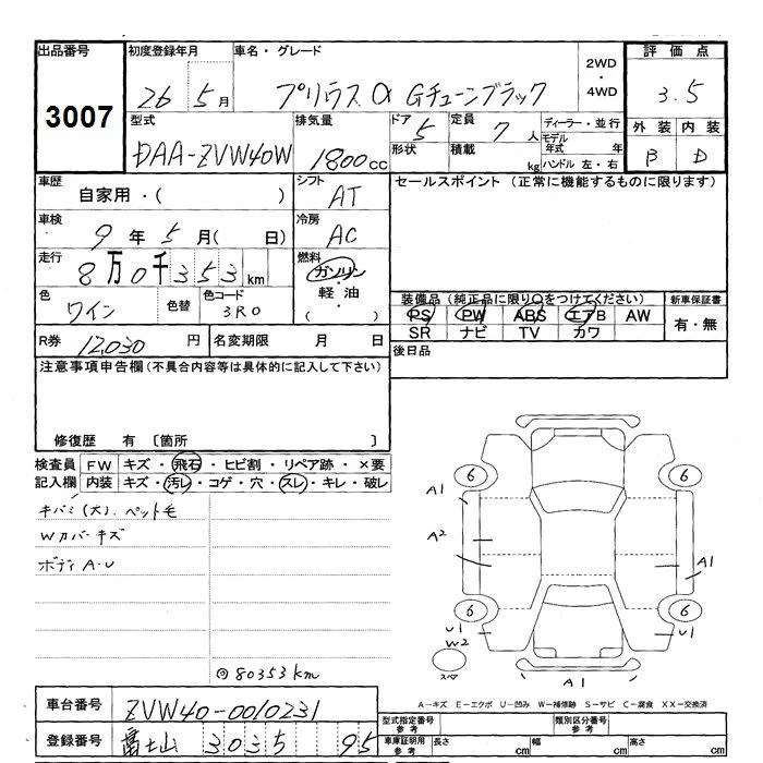 Toyota PRIUS ALPHA с аукциона Японии JU Shizuoka лот № 3007