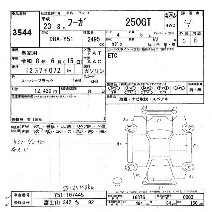 Nissan FUGA с аукциона Японии JU Shizuoka лот № 3544