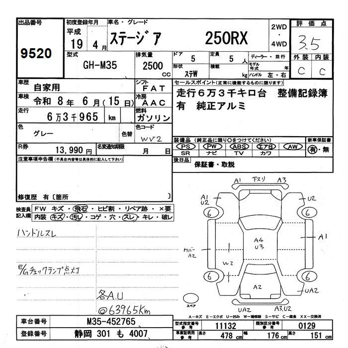 Nissan STAGEA с аукциона Японии JU Shizuoka лот № 9520